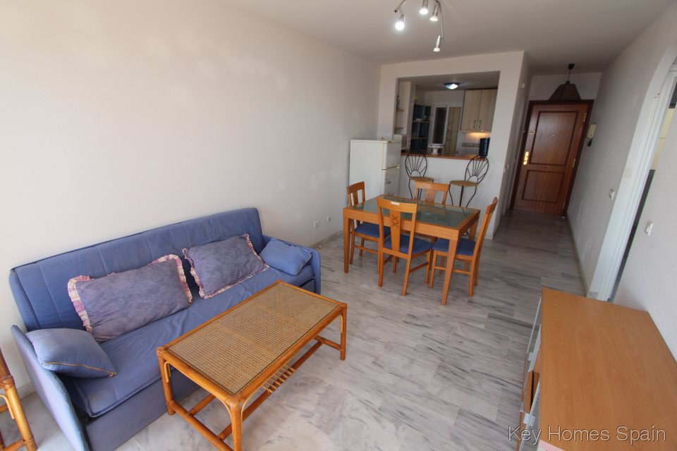 El apartamento está en una pequeña urbanización con una hermosa piscina y jardines y también tiene una plaza de aparcamiento en el garaje subterráneo comunitario.
