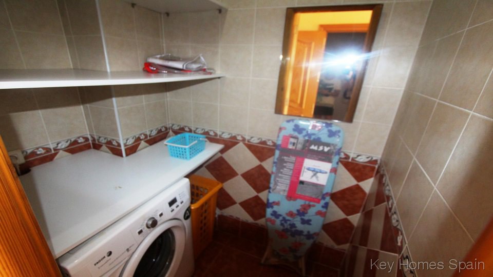 Inside the accommodation comprises of a fully fitted kitchen with archway to the living-dining room with air conditioning and patio doors leading out to a small balcony, separate utility room, 3 bedrooms and a full bathroom.