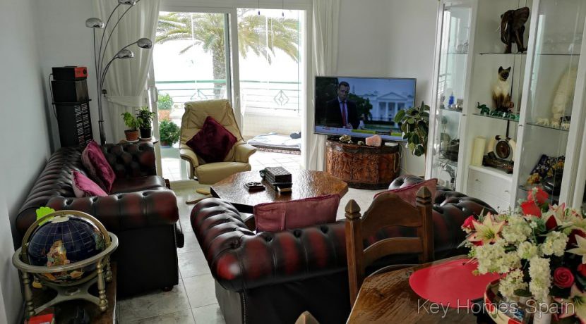 Magnifique appartement en première ligne de plage avec 2 chambres et 2 salles de bains, une cuisine séparée spacieuse avec buanderie et un salon lumineux et ensoleillé avec climatisation. La terrasse orientée sud a de nouveaux rideaux en verre de qualité et une vue imprenable sur la mer.
