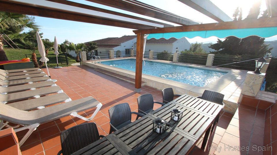 Luxe villa gelegen in een idyllische omgeving, op slechts 3 km van Nerja, op een perceel grond grenzend aan het Nationaal Park van de Sierra Tejeda. Omringd door pijnbomen en fruitbomen, heeft het huis een spectaculair uitzicht op Nerja en de Middellandse Zee. Het privé zwembad (8 x 4 m) heeft grote terrassen om te zonnen en ldaarnaast is een groot gazon met een barbecue.